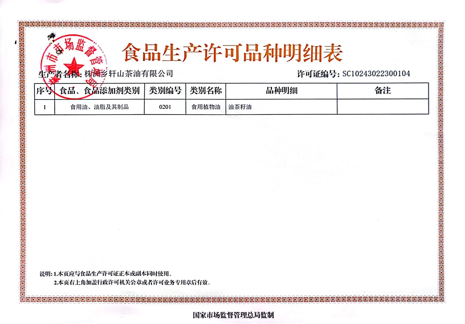 食品生产许可证